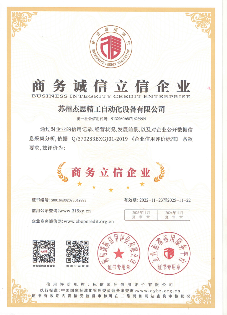 蘇州杰思精工自動化設(shè)備有限公司本著“高質(zhì)量,優(yōu)服務(wù),求發(fā)展”的精神,